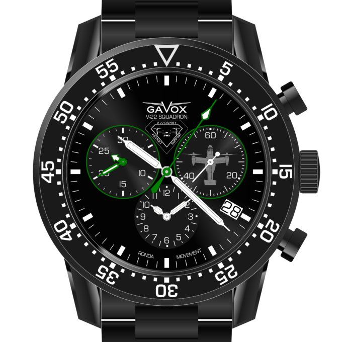 Inspired by early military watches, the AT-6 Texan features a multifunction caliber designed and built by Seiko Instruments, the second biggest watch manufacturer in the world. It uses a precision Quartz Oscillator calibrated at 32,768 Hz. Forged in 316L stainless steel, the case with PVD Matte surface finishing is water-resistant to 5 bar.