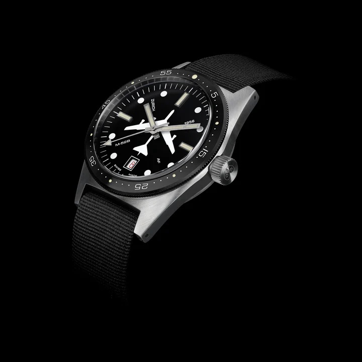 The M-52B AF evokes the exceptionally rare Ollech & Wajs B-905 US Airforce – a watch that was custom made more than half a century ago for airmen serving in Vietnam. It also salutes the longest-serving combat aircraft in history.